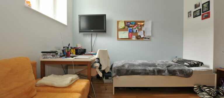 Die 125 m² – 5er WG besticht durch ihre zentrale Lage gleich hinter dem Rathaus mit wenigen Gehminuten zur Hauptuni.